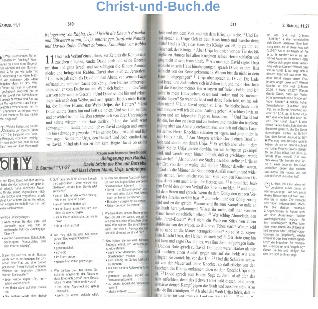 gesamter Text des Alten Testaments - vertiefende Fragen neben dem Bibeltext - 51 ausgearbeitete Kurse - Einführungen zum jeweiligen biblischen Buch - historische Hintergründe - Info zu Verfasser, Entstehungszeit, Besonderheit - Anregungen für Gesprächsrunden - speziell für Kleingruppen aller Art - Hauskreise - Jugendabende - Frauenkreise - Freizeitgruppen
